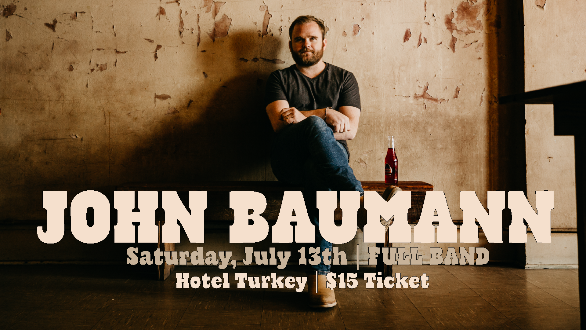 The one and only John Baumann returns to Hotel Turkey full band for the perfect Steak Night under the Summer stars.
